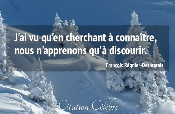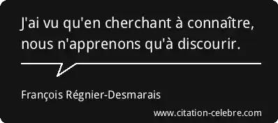 J'ai vu qu'en cherchant à connaître, nous n'apprenons qu'à discourir.