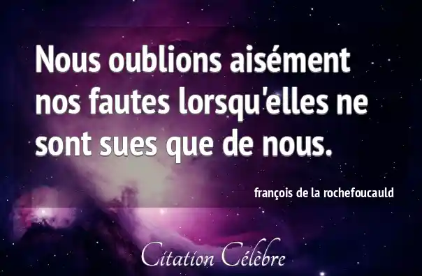 Nous oublions aisément nos fautes lorsqu'elles ne sont sues que de nous.