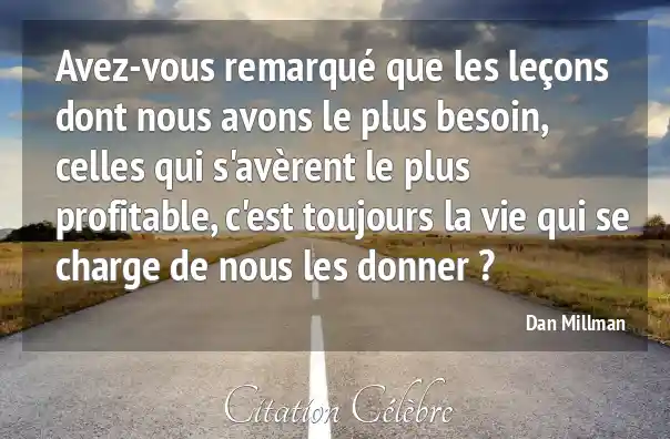 Avez-vous remarqué que les leçons dont nous avons le plus besoin, celles qui s'avèrent le plus profitable, c'est toujours la vie qui se charge de nous les donner ?