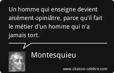 Un homme qui enseigne devient aisément opiniâtre, parce qu'il fait le métier d'un homme qui n'a jamais tort.