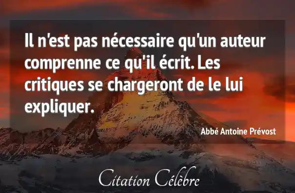 Il n'est pas nécessaire qu'un auteur comprenne ce qu'il écrit. Les critiques se chargeront de le lui expliquer.