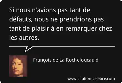 Si nous n'avions pas tant de défauts, nous ne prendrions pas tant de plaisir à en remarquer chez les autres.