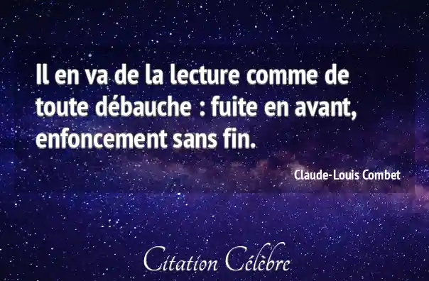 Il en va de la lecture comme de toute débauche : fuite en avant, enfoncement sans fin.