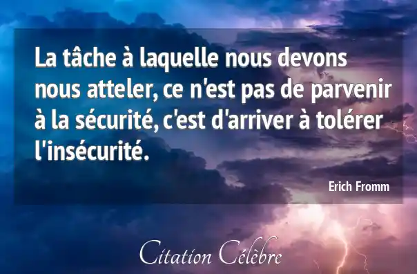 La tâche à laquelle nous devons nous atteler, ce n'est pas de parvenir à la sécurité, c'est d'arriver à tolérer l'insécurité.