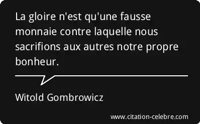 La gloire n'est qu'une fausse monnaie contre laquelle nous sacrifions aux autres notre propre bonheur.
