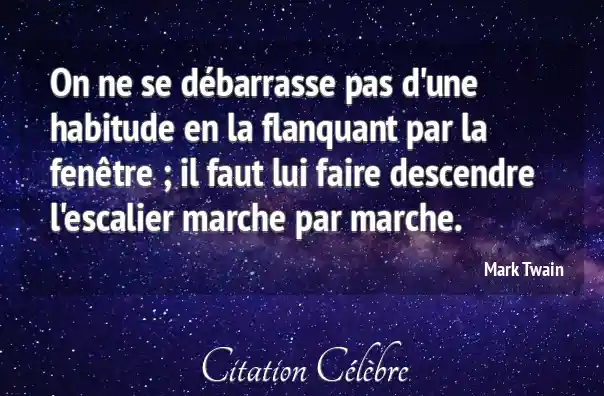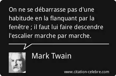 Citation Mark Twain lui : On ne se débarrasse pas d'une habitude en la flanquant...