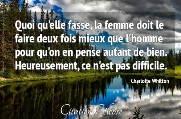 Quoi qu'elle fasse, la femme doit le faire deux fois mieux que l'homme pour qu'on en pense autant de bien. Heureusement, ce n'est pas difficile.