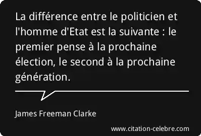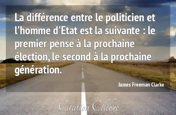 La différence entre le politicien et l'homme d'Etat est la suivante : le premier pense à la prochaine élection, le second à la prochaine génération.