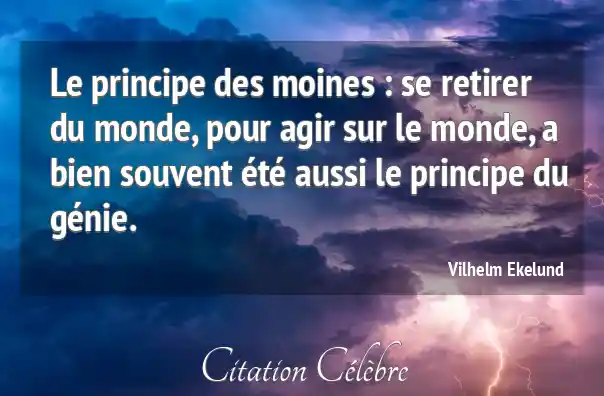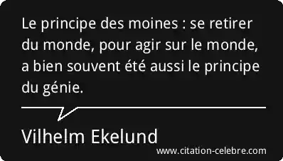 Le principe des moines : se retirer du monde, pour agir sur le monde, a bien souvent été aussi le principe du génie.