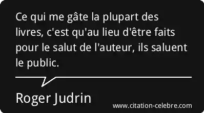 Ce qui me gâte la plupart des livres, c'est qu'au lieu d'être faits pour le salut de l'auteur, ils saluent le public.