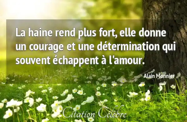La haine rend plus fort, elle donne un courage et une détermination qui souvent échappent à l'amour.