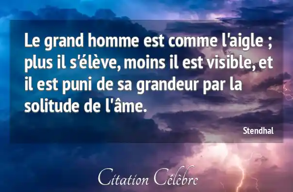 Le grand homme est comme l'aigle ; plus il s'élève, moins il est visible, et il est puni de sa grandeur par la solitude de l'âme.