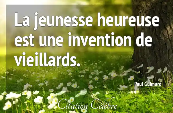 Qu'elle est admirable la jeunesse de l'homme ! Elle est toute d'angoisse et de féeries, et il n'arrive jamais à la connaître sous son vrai jour, que lorsqu'elle l'a quitté pour toujours.