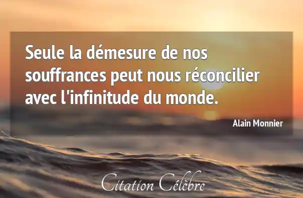 Seule la démesure de nos souffrances peut nous réconcilier avec l'infinitude du monde.