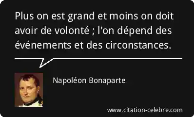 Plus on est grand et moins on doit avoir de volonté ; l'on dépend des événements et des circonstances.