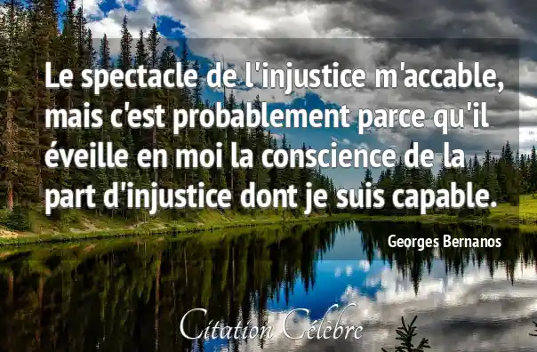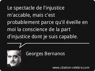 Le spectacle de l'injustice m'accable, mais c'est probablement parce qu'il éveille en moi la conscience de la part d'injustice dont je suis capable.