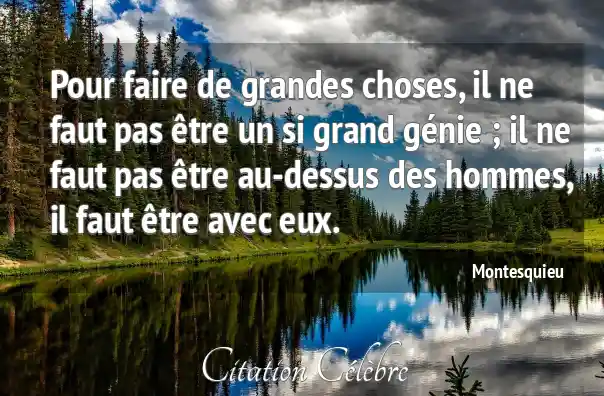 Pour faire de grandes choses, il ne faut pas être un si grand génie ; il ne faut pas être au-dessus des hommes, il faut être avec eux.