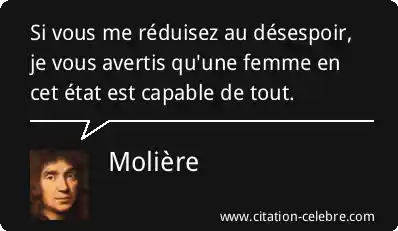 Si vous me réduisez au désespoir, je vous avertis qu'une femme en cet état est capable de tout.