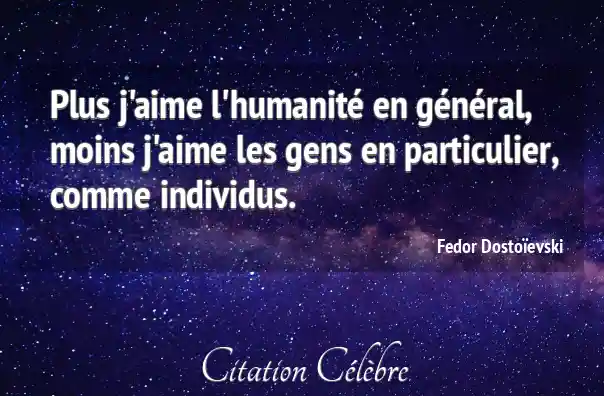 Plus j'aime l'humanité en général, moins j'aime les gens en particulier, comme individus.