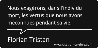 Citation Florian Tristan vie : Nous exagérons, dans l'individu mort, les vertus que nous avons...