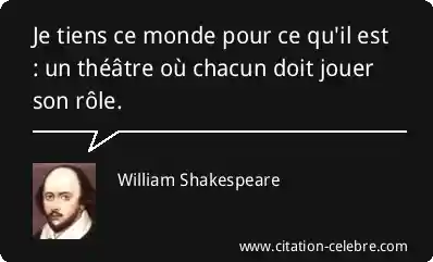 Je tiens ce monde pour ce qu'il est : un théâtre où chacun doit jouer son rôle.