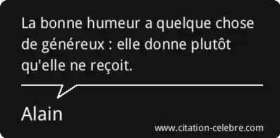 La bonne humeur a quelque chose de généreux : elle donne plutôt qu'elle ne reçoit.