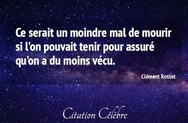 Ce serait un moindre mal de mourir si l'on pouvait tenir pour assuré qu'on a du moins vécu.