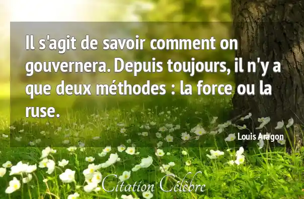 Il s'agit de savoir comment on gouvernera. Depuis toujours, il n'y a que deux méthodes : la force ou la ruse.