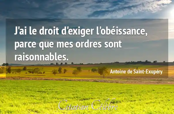J'ai le droit d'exiger l'obéissance, parce que mes ordres sont raisonnables.