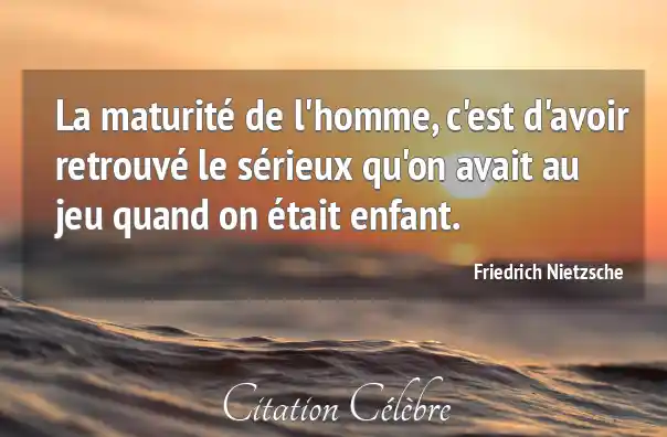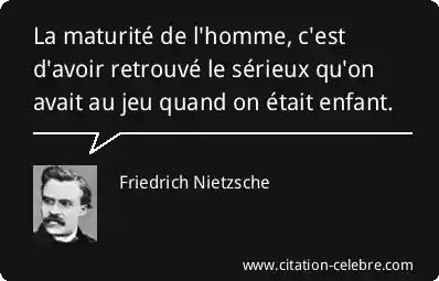 La maturité de l'homme, c'est d'avoir retrouvé le sérieux qu'on avait au jeu quand on était enfant.
