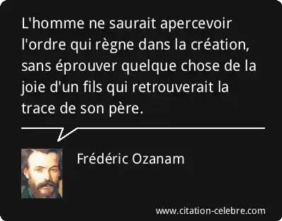 L'homme ne saurait apercevoir l'ordre qui règne dans la création, sans éprouver quelque chose de la joie d'un fils qui retrouverait la trace de son père.