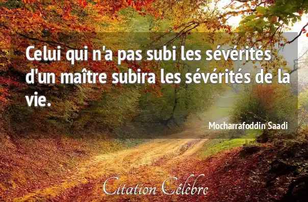 Celui qui n'a pas subi les sévérités d'un maître subira les sévérités de la vie.