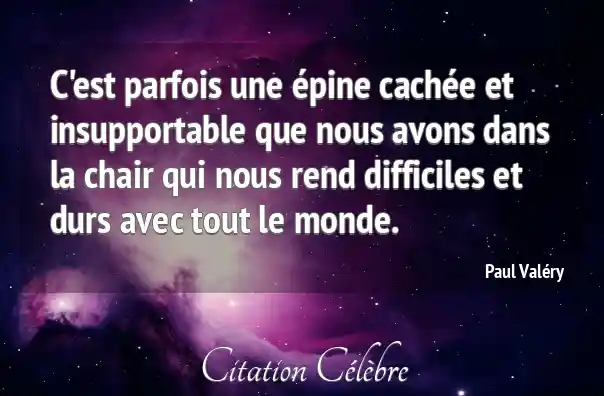 C'est parfois une épine cachée et insupportable que nous avons dans la chair qui nous rend difficiles et durs avec tout le monde.