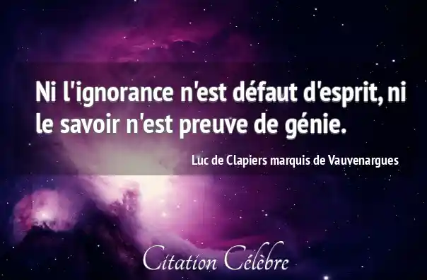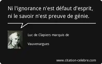 Ni l'ignorance n'est défaut d'esprit, ni le savoir n'est preuve de génie.
