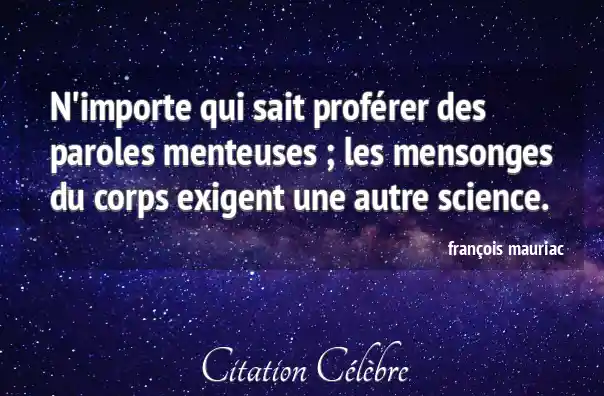 N'importe qui sait proférer des paroles menteuses ; les mensonges du corps exigent une autre science.