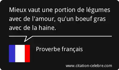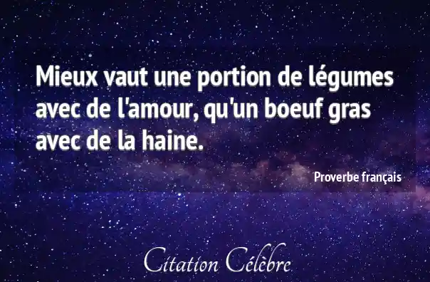 Mieux vaut une portion de légumes avec de l'amour, qu'un boeuf gras avec de la haine.