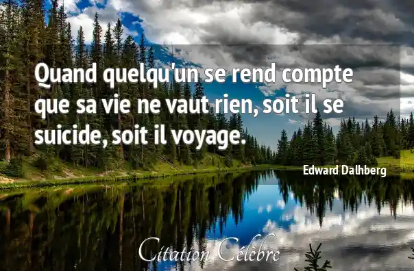 Quand quelqu'un se rend compte que sa vie ne vaut rien, soit il se suicide, soit il voyage.