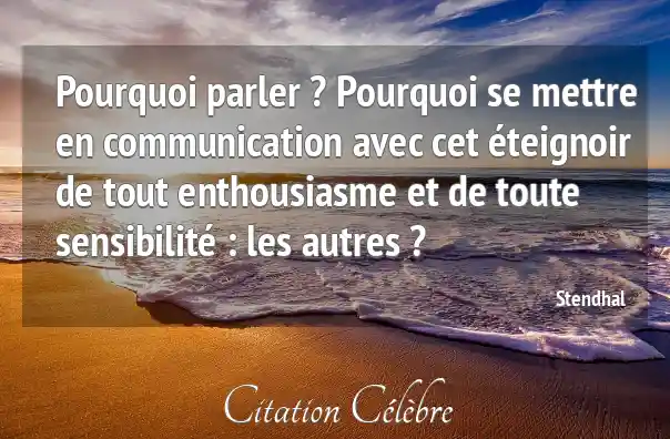 Pourquoi parler ? Pourquoi se mettre en communication avec cet éteignoir de tout enthousiasme et de toute sensibilité : les autres ?