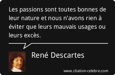 Les passions sont toutes bonnes de leur nature et nous n'avons rien à éviter que leurs mauvais usages ou leurs excès.
