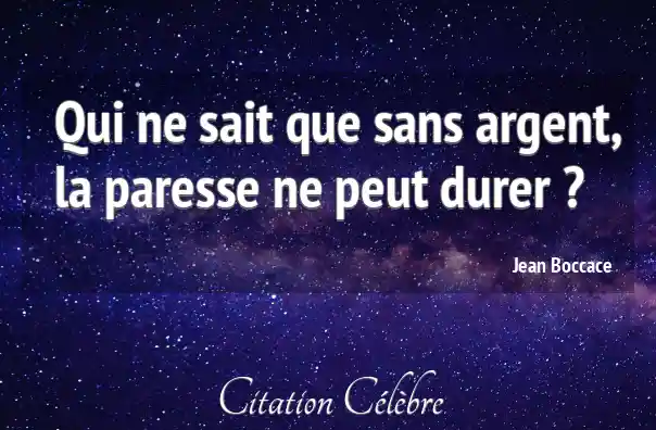 Qui ne sait que sans argent, la paresse ne peut durer ?