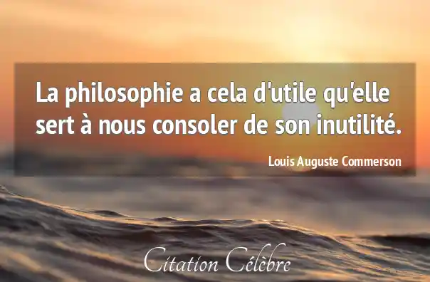 La philosophie a cela d'utile qu'elle sert à nous consoler de son inutilité.