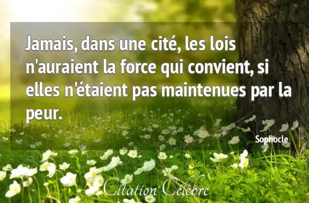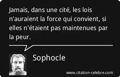 Jamais, dans une cité, les lois n'auraient la force qui convient, si elles n'étaient pas maintenues par la peur.