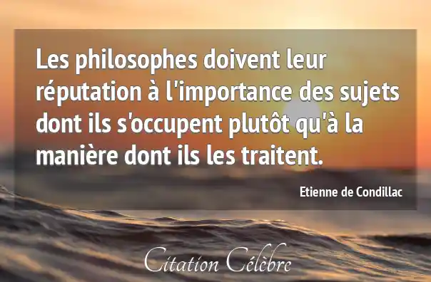 Les philosophes doivent leur réputation à l'importance des sujets dont ils s'occupent plutôt qu'à la manière dont ils les traitent.