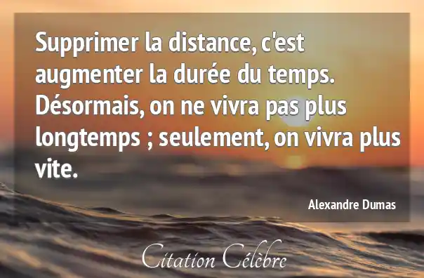 Supprimer la distance, c'est augmenter la durée du temps. Désormais, on ne vivra pas plus longtemps ; seulement, on vivra plus vite.