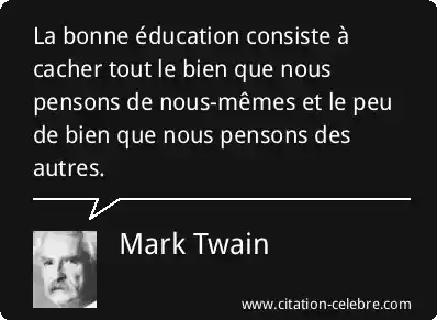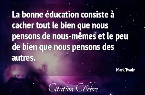 La bonne éducation consiste à cacher tout le bien que nous pensons de nous-mêmes et le peu de bien que nous pensons des autres.