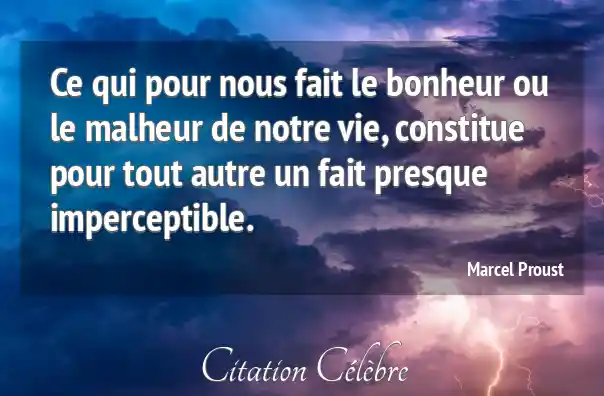 Ce qui pour nous fait le bonheur ou le malheur de notre vie, constitue pour tout autre un fait presque imperceptible.