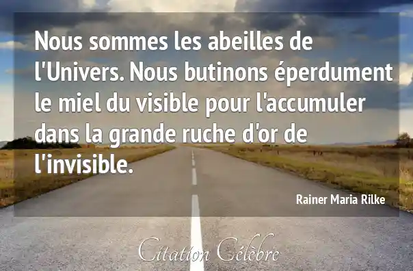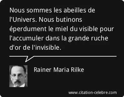 Nous sommes les abeilles de l'Univers. Nous butinons éperdument le miel du visible pour l'accumuler dans la grande ruche d'or de l'invisible.