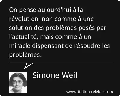 On pense aujourd'hui à la révolution, non comme à une solution des problèmes posés par l'actualité, mais comme à un miracle dispensant de résoudre les problèmes.