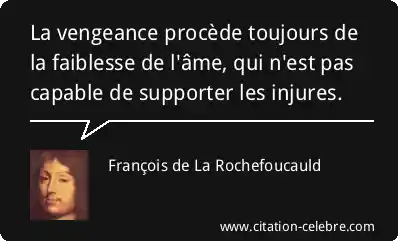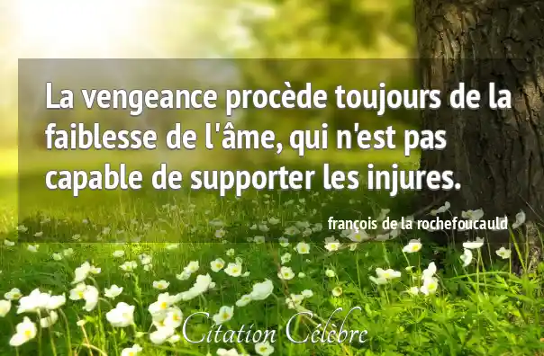La vengeance procède toujours de la faiblesse de l'âme, qui n'est pas capable de supporter les injures.