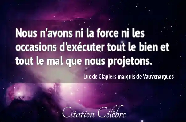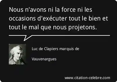 Nous n'avons ni la force ni les occasions d'exécuter tout le bien et tout le mal que nous projetons.